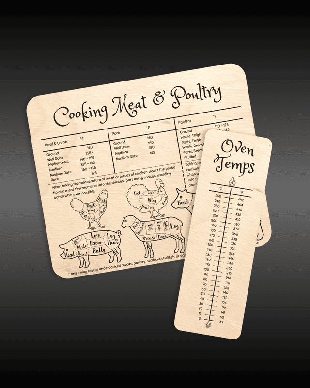 The easy-to-read layout includes specific temperature ranges for different levels of doneness, from rare to well-done, along with helpful meat cut diagrams showing the various parts of each animal. A bonus oven temperature conversion scale makes it simple to switch between Fahrenheit and Celsius. The magnet format allows for convenient placement on your refrigerator or other metal surfaces, keeping essential cooking information within arm's reach. Perfect for both novice cooks and seasoned chefs, this guide helps eliminate the guesswork from meat preparation and ensures food safety through proper temperature monitoring. The vintage-inspired design adds a charming touch to your kitchen while providing invaluable cooking information.