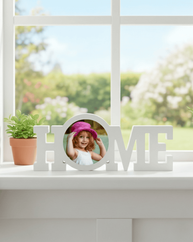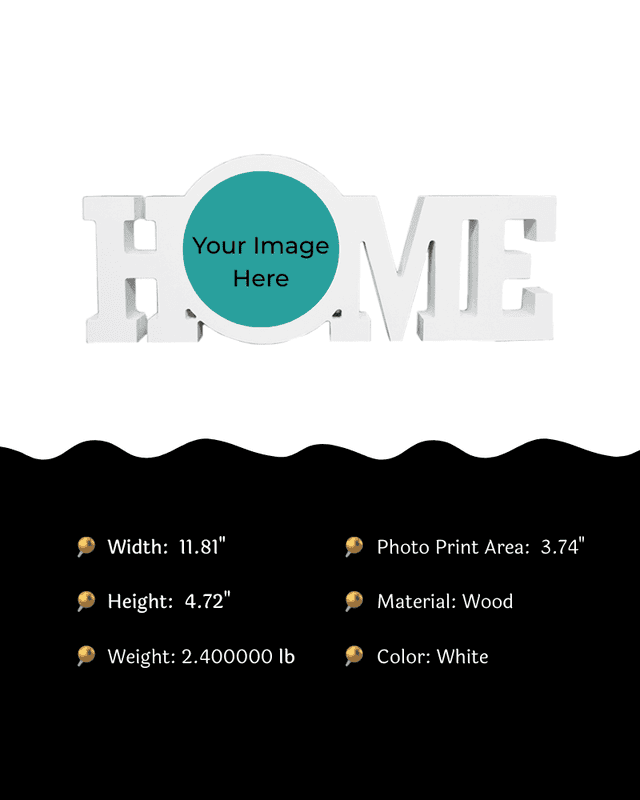 Personalize your space and celebrate what matters most with this delightful Custom Wood "HOME" Photo Block. More than just a simple frame, this piece is a stylish decorative accent that lets you permanently showcase a favorite memory. The block features the word "HOME" carved from durable, white-painted wood, designed to stand freely on any flat surface, instantly brightening up a room.