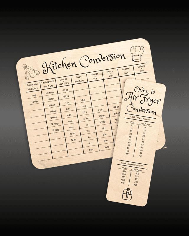 COMPREHENSIVE DESIGN: Two-piece kitchen conversion chart set featuring standard measurement conversions and a dedicated air fryer cooking guide