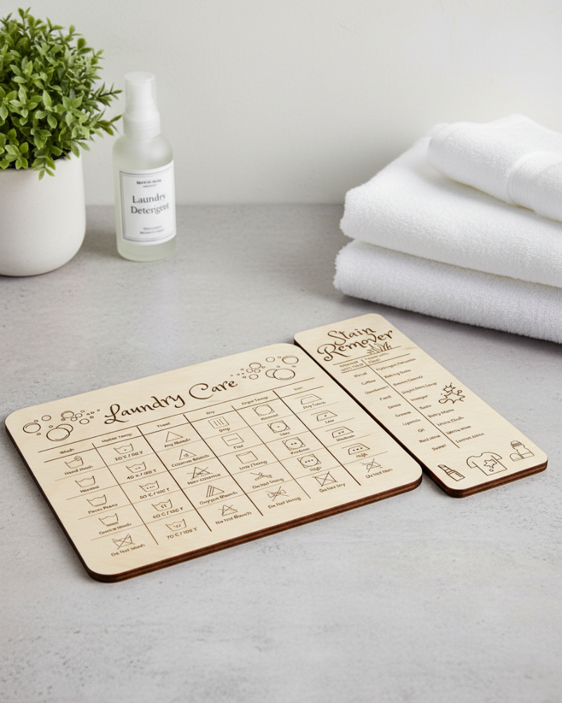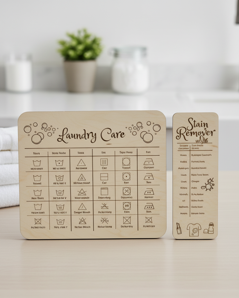 DURABLE DESIGN: Wooden-style cards offer lasting quality and resistance to water exposure in laundry areas